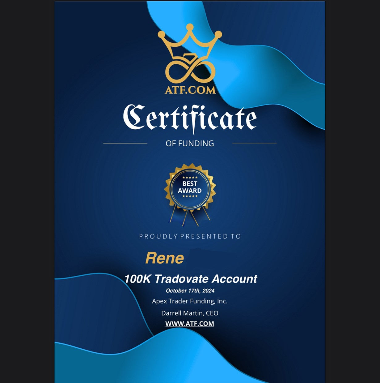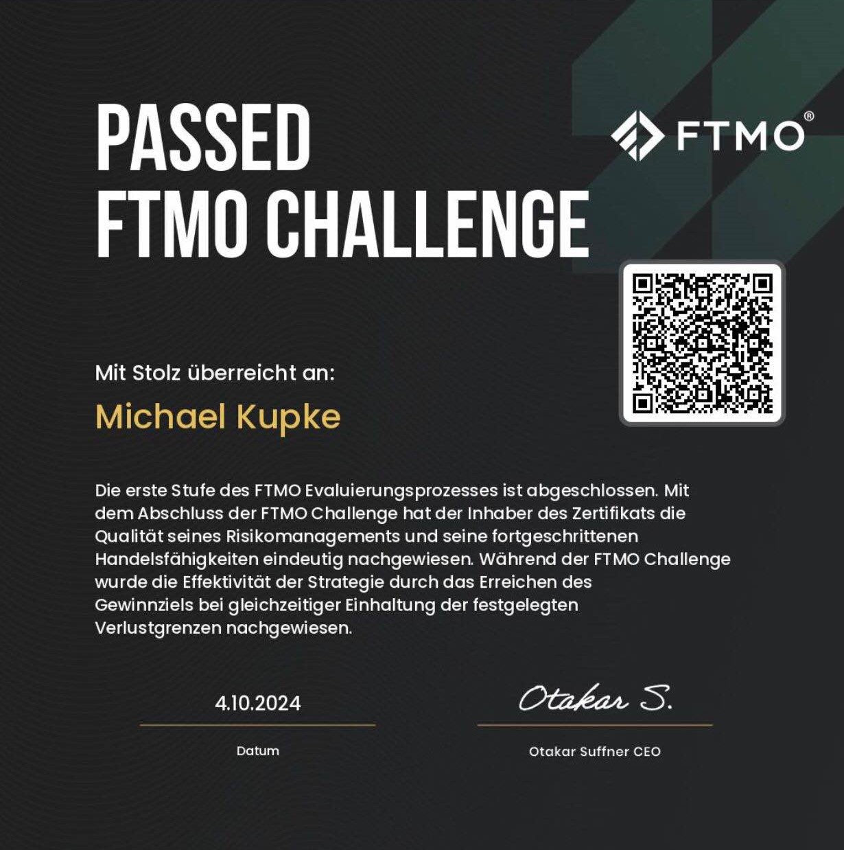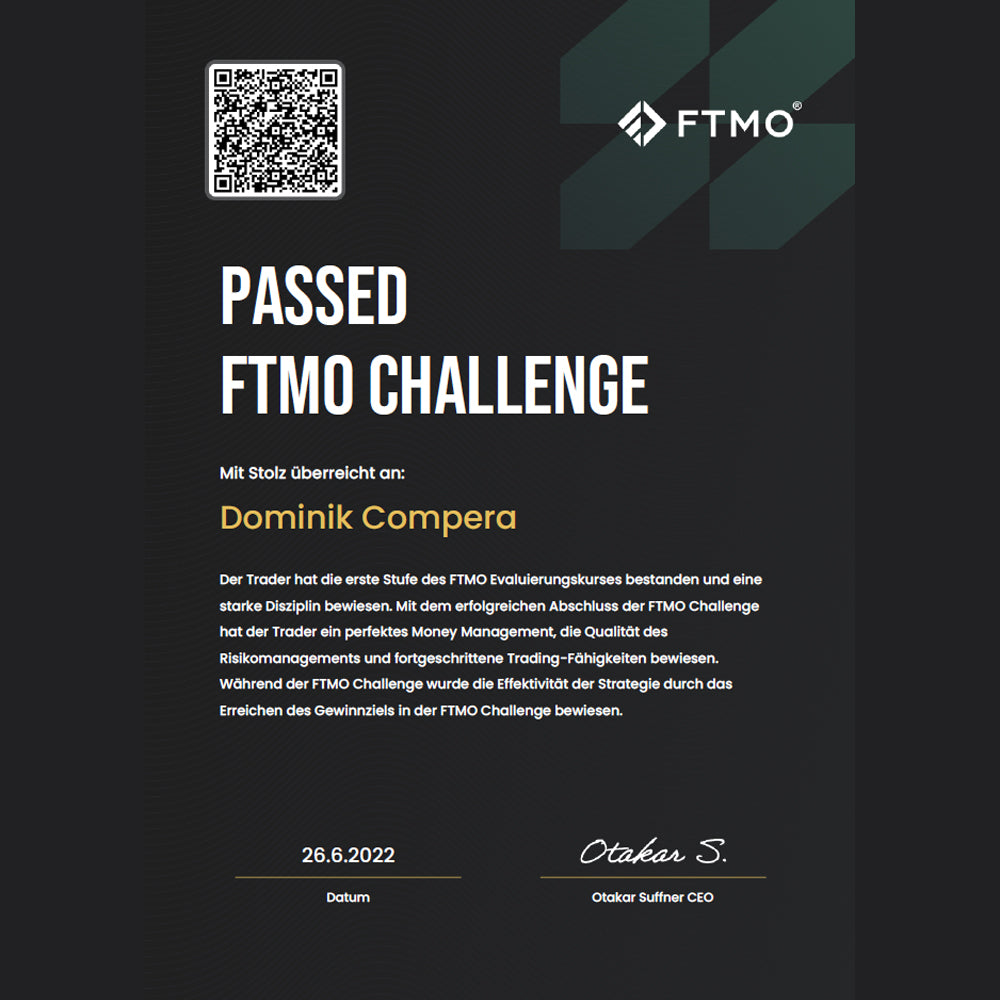 Hatte den Kurs in 3 Abenden durch und mich direkt an eine 300k Challenge gewagt welche ich nach 3 Handelstagen mit einem Superstart an einem Montag durch das FreeLiveTrading begonnen habe, erfolgreich gefundet.